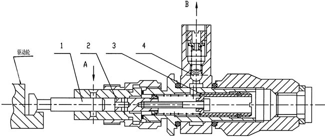 1—任務活塞 2—節制活塞 3—調理螺套 4—單向閥
